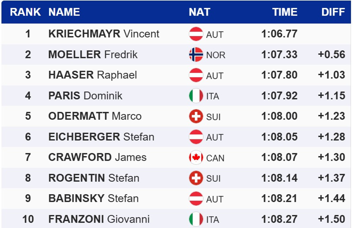 Напередодні швидкісний спуск у Бівер Кріку виграв Марко Одерматт. У суботу, 6 грудня, через несприятливий прогноз погоди змагань на етапі у Бівер Кріку не буде. В неділю відбудеться гігант.