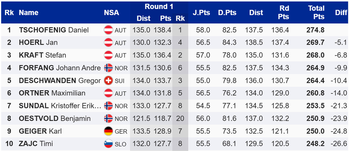 Австрійський стрибун Даніель Чофеніг виграв другий особистий старт на етапі Кубку світу в швейцарському Енгельбергу. Він випередив двох партнерів по команді – вчорашнього переможця Яна Хьорля та Штефана Крафта.