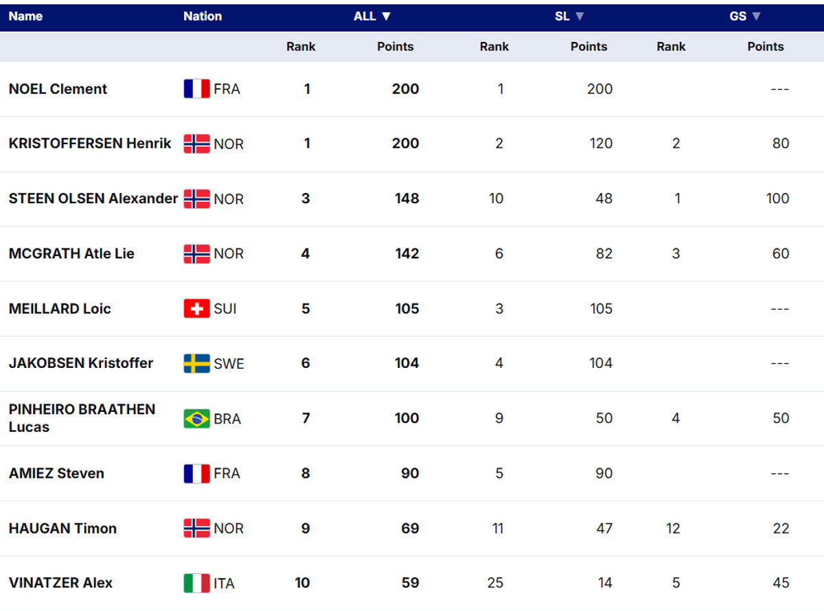 Загальний залік Кубку світу (чоловіки):