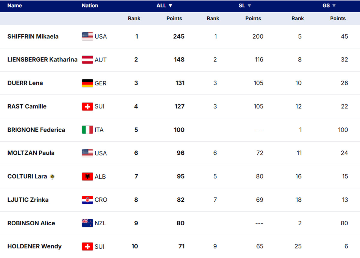 Загальний залік Кубку світу (жінки):