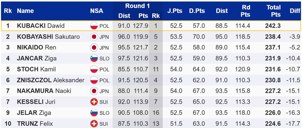 Перемогу здобув поляк Давід Кубацкі, який випередив двох японців – Сакутаро Кобаясі та Рена Нікайдо.