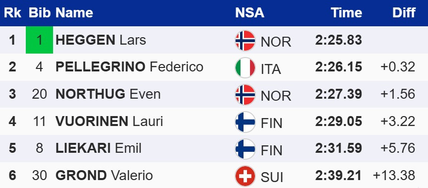 Норвезький лижник Ларс Хегген виграв спринт вільним стилем на етапі Кубку світу в німецькому Обергофі. Для нього це перша в кар'єрі перемога на Кубку світу. У фіналі Хегген випередив італійця Федеріко Пеллегріно та свого партнера по команді Евена Нортуга.