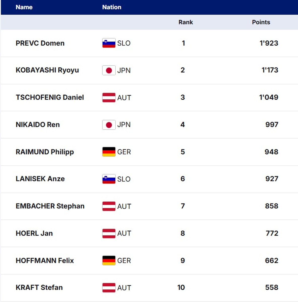 Ну а Йоханнес Лампартер, який тиждень тому в Лахті достроково забезпечив собі другий Кубок світу в кар'єрі, завершив сезон красивою та переконливою перемогою. Австрієць ще на трампліні нокаутував суперників, стрибнувши на 136 метрів за скороченого розгону. Лампартер провів феноменальний у плані стабільності сезон: жодного фінішу нижче за 7 місце та взагалі лише 2 результати за межами топ-5.