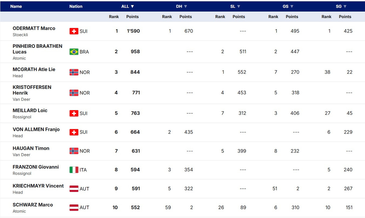 Скасування обох супергігантів дозволило Марко Одерматту достроково завоювати четвертий поспіль Малий кришталевий глобус у цій дисципліні. Сумарно за етап у Куршевелі швейцарець забезпечив собі одразу три глобуси. Подіум у п'ятничному швидкісному спуску приніс йому дострокові перемоги у загальному заліку Кубку світу та у заліку даунхілу.