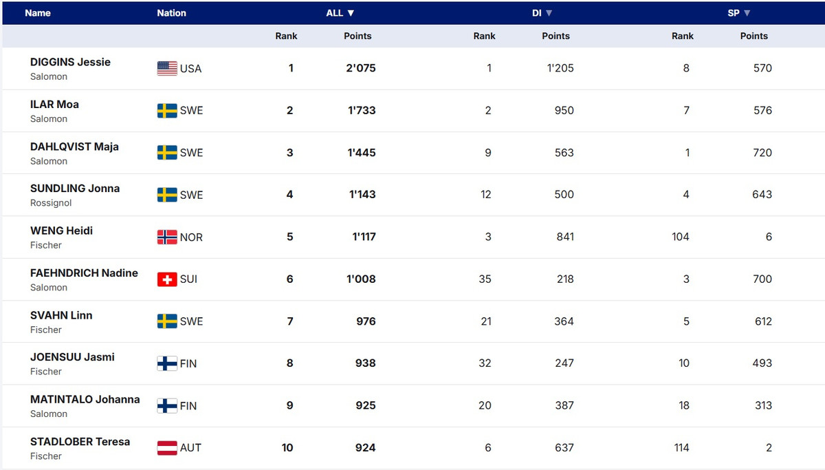 Ще одна шведка, Моа Ілар, посіла лише 19 місце та фактично попрощалася навіть із ілюзорними шансами на Великий кришталевий глобус: Джессіка Діггінс замкнула топ-6 і назбирала чимало бонусних очок на проміжних фінішах. Де-юре Джесс Великий кришталевий глобус собі ще не забезпечила, проте це, мабуть і на краще: зробити це на очах у домашньої публіки в Лейк Плесіді буде ще приємніше.