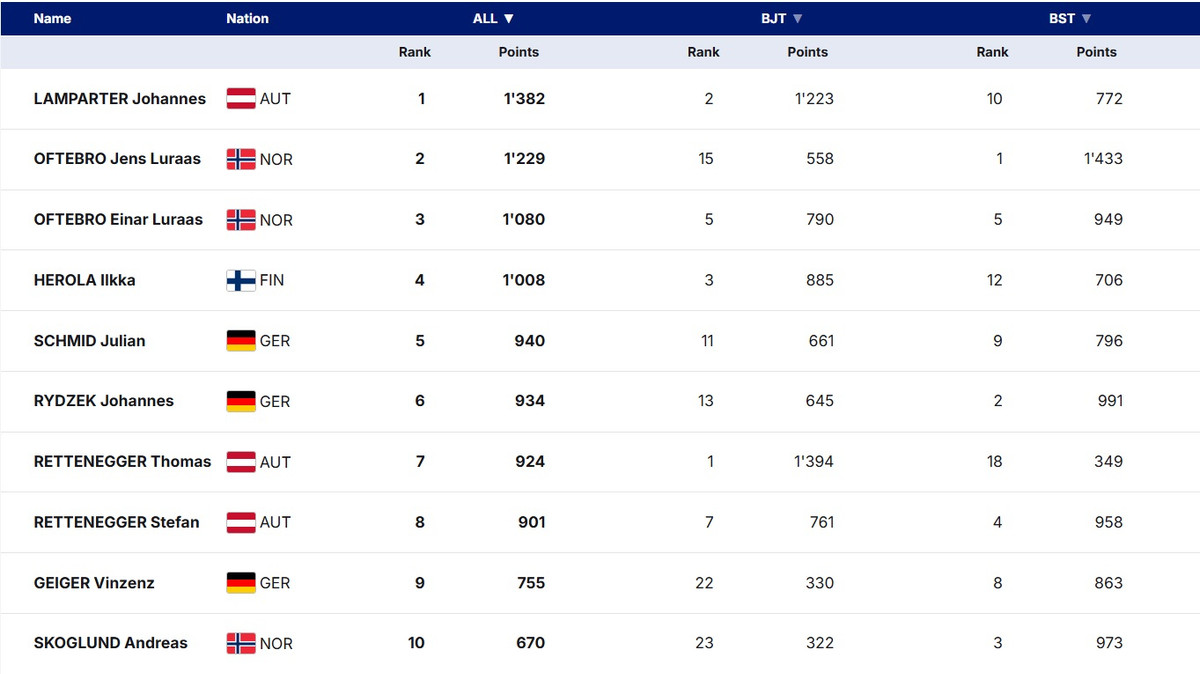 Другим став Єнс Лурос Офтебро, який був між небом і землею. Герой Олімпіади-2026 не мав шансів ні поборотися з Лампартером за перемогу, ні опуститися нижче. У боротьбі за третє місце його старший брат Айнар випередив Ілкку Херолу.