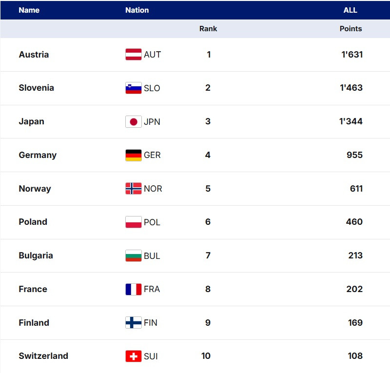Що стосується збірної Австрії загалом, то не можна сказати, що команда подолала ту кризу, в яку потрапила на етапі у Віслі. Залишається у зоні турбулентності Ян Хьорль, який після 6 місця в суботу в неділю навіть не потрапив у топ-30. Тричі поспіль фінішує в другому десятку Даніель Чофеніг. Все ж, усі розмови про його неоптимальну підготовку до сезону були небезпідставними: після несподіваної перемоги на відкритті Кубку світу в Ліллехаммері чинний володар Великого кришталевого глобуса (ВКГ) жодного разу не потрапив на подіум.
