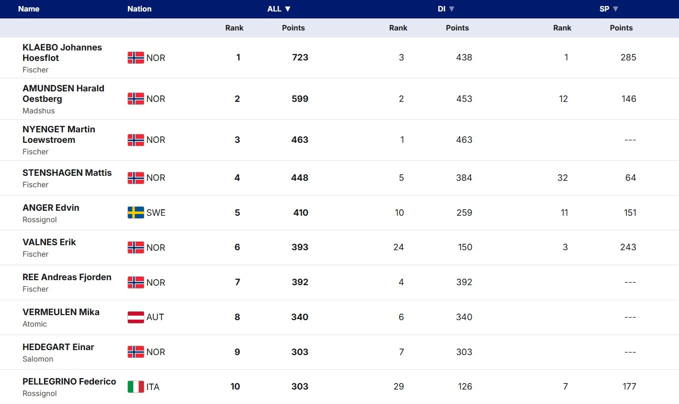 А ось хто в Клінгенталі додав, так це збірна Норвегії, яка видала свій найкращий етап у поточному сезоні. В обох стартах у топ-10 фінішували Крістоффер Еріксен Сундал і Халвор Егнер Гранеруд, у суботу до них приєднався ще і Йоханн Андре Форфанг. 5 місце Сундала в неділю стало найкращим результатом для норвежців у поточному сезоні. За Крістоффера варто лише порадіти, враховуючи, що йому в поточному сезоні дуже не щастить – він пропустив два особистих старти через проблеми з інвентарем. У Фалуні його підвів замок на костюмі, а минулого тижня у Віслі – кріплення лиж.