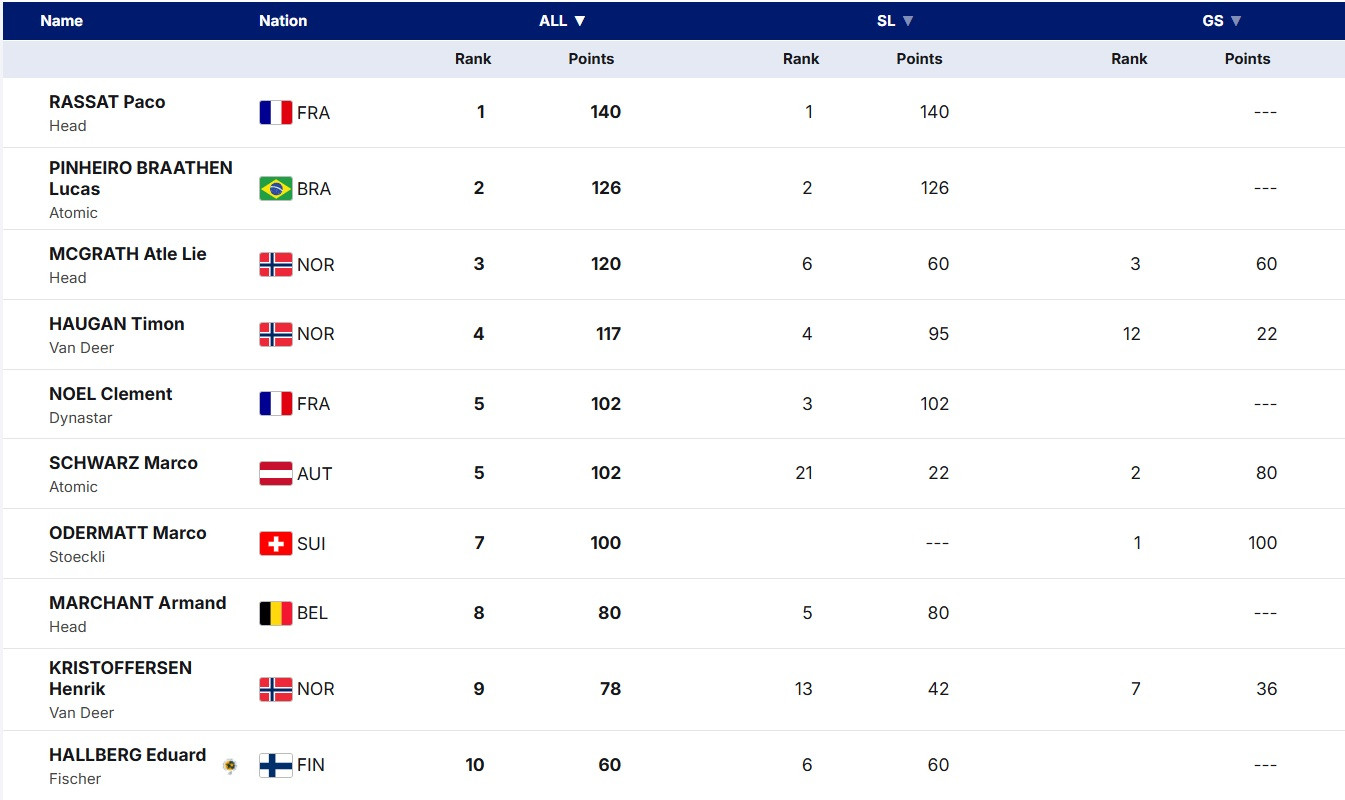 Як і слалом тижневої давнини у Леві, старт у Гурглі подарував чимало історичних досягнень. Свою першу перемогу на Кубку світу здобув Пако Расса. Минулого тижня у Фінляндії він встановив свій особистий рекорд, посівши 6 місце, тепер же дотягнувся і до першої перемоги, здійснивши рейд з 14 місця після першої спроби та перехопивши червоний біб лідера Кубку світу. Невже поряд із Клеманом Ноелем у складі збірної Франції з'явилася ще одна зірка слалому?