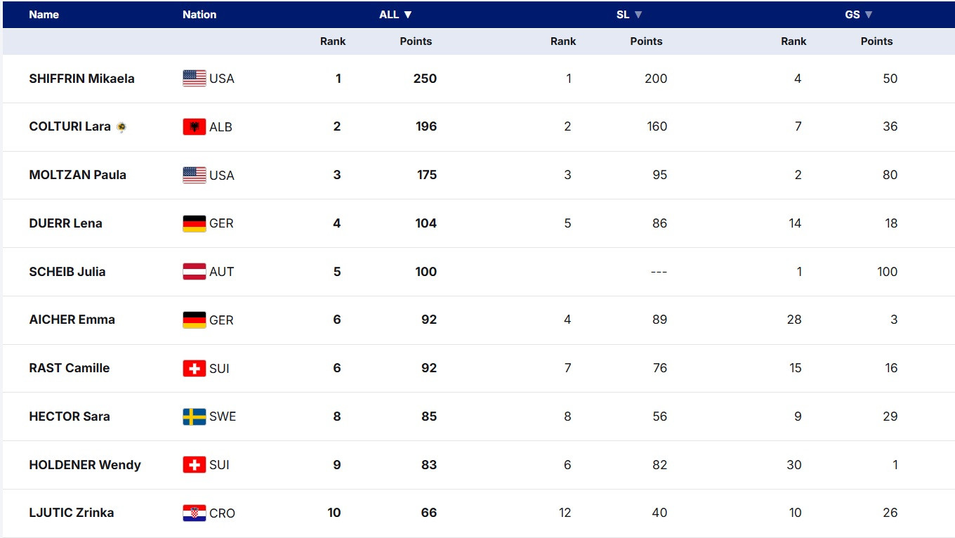 Як і тиждень тому в Леві, другою стала Лара Кольтурі. Черговий класний виступ від тінейджерки зі збірної Албанії, проте вона знову не зуміла показати щось, що би створило реальний тиск на Шиффрін.