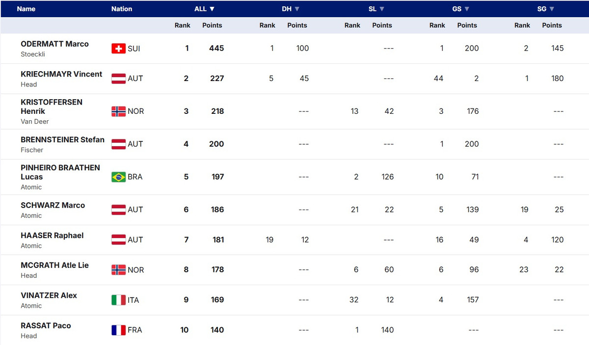 Компанію Одерматту та Вінатцеру в чільній трійці склав Хенрік Крістофферсен, для якого це другий поспіль подіум у гіганті. Легендарний норвежець на старті нинішнього сезону також у слаломі виглядає слабкіше, ніж у гіганті. Хоча, на відміну від Вінатцера, в його випадку це виглядає радше збігом обставин, ніж закономірністю.