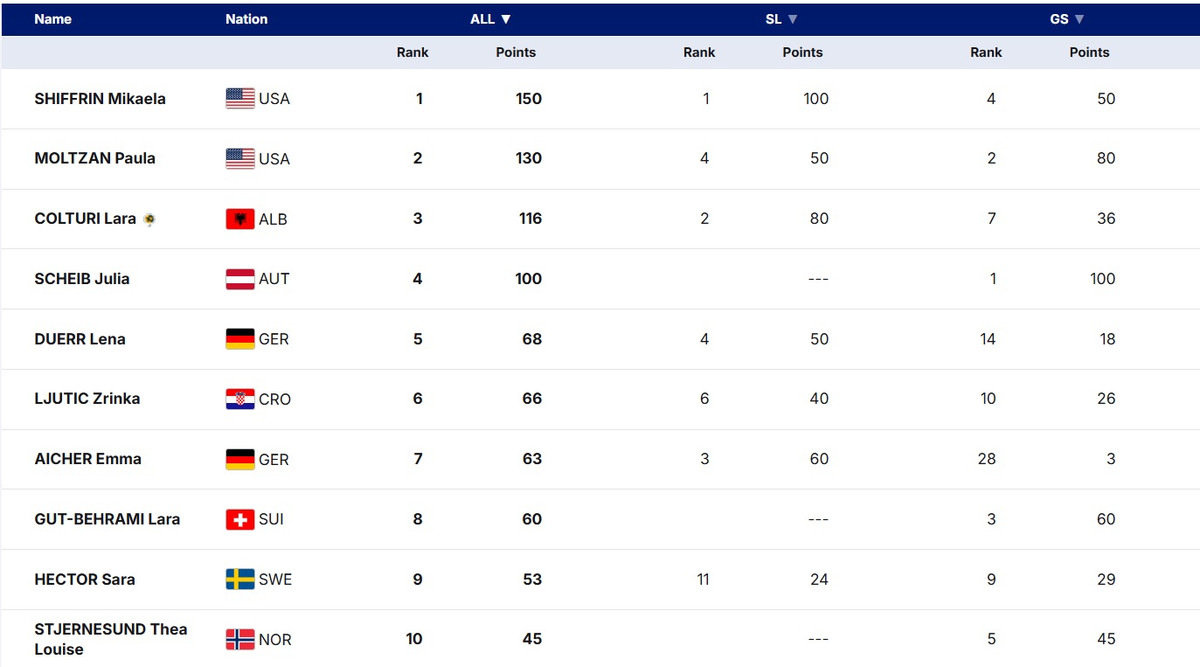 Якщо ж оцінювати загальний командний рівень збірної США, то тут усе було не настільки однозначно добре, як у Зольдені. Окрім Шиффрін очки набрала лише Пола Мольцан, яка в другій спробі здійснила вражаючий рейд з 19 місця на 4. Топовий потенціал у Поли був помітний вже у першому раунді, де вона йшла за прекрасним графіком упродовж 2/3 дистанції, проте припустилася помилки наприкінці крутої ділянки траси.