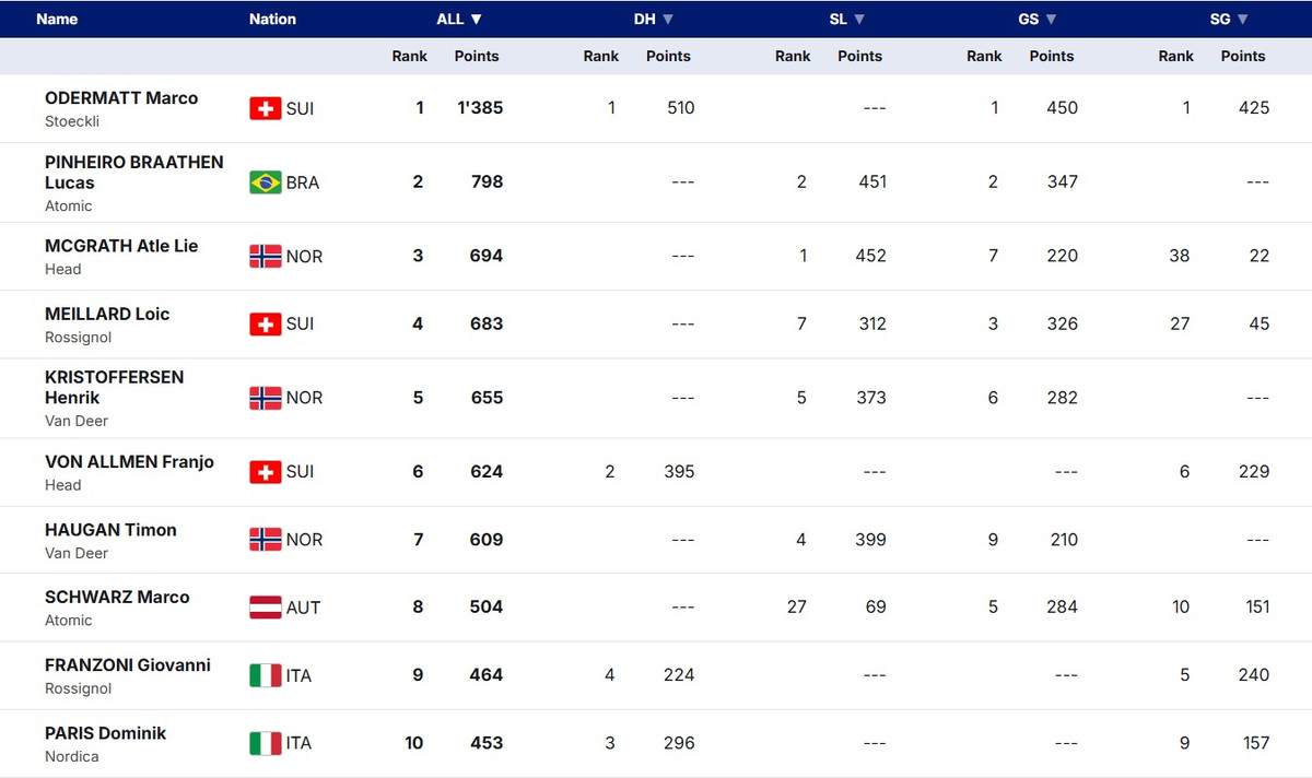 Загальний залік Кубку світу (чоловіки):