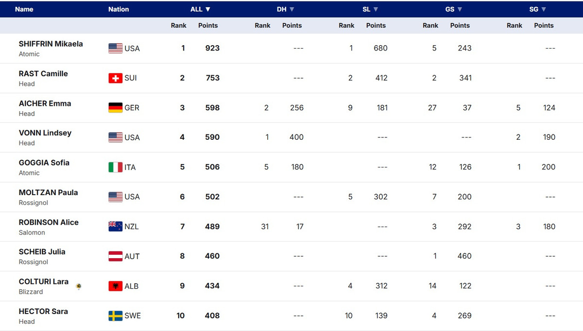 Повертаючись до теми збірної Італії, відзначимо стабільність Лаури Піровано – ще два фініші у топ-10. При чому, в недільному супергіганті вона стартувала під незручним першим номером. Головна новина вікенду також прийшла зі стану "Скуадри адзурри": Федеріка Бріньоне повернеться у гонки вже у вівторок – вона виступить у гіганті у Кронплатці. Саме на місцевій трасі "Ерта" вона тренувалася в останні дні, і враження були позитивними. Заради проби сил перед Олімпіадою Федеріка навіть готова ризикнути своїм захищеним рейтингом і перспективою втратити місце в червоній стартовій групі.