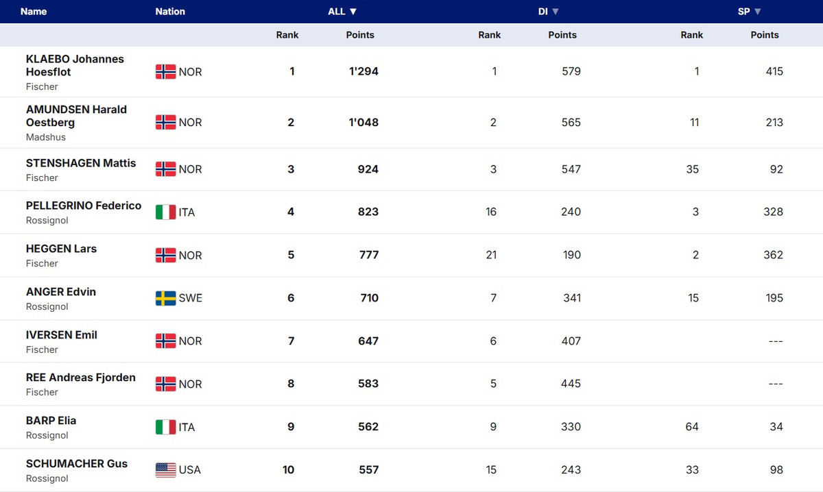 За крок від подіуму зупинився Елія Барп, який програв Вальнешу 3 секунди. В топ-10 заїхали ще два представники збірної Італії – віцечемпіон суботнього спринта Пеллегріно та Давіде Грац. В коньковому спринті до півфіналу добрався Давіде Мочелліні, хоча він – яскраво виражений класист. Схоже, "Скуадра адзурра" підходить до домашньої Олімпіади у класній формі. Чому би не помріяти про медаль у естафеті?