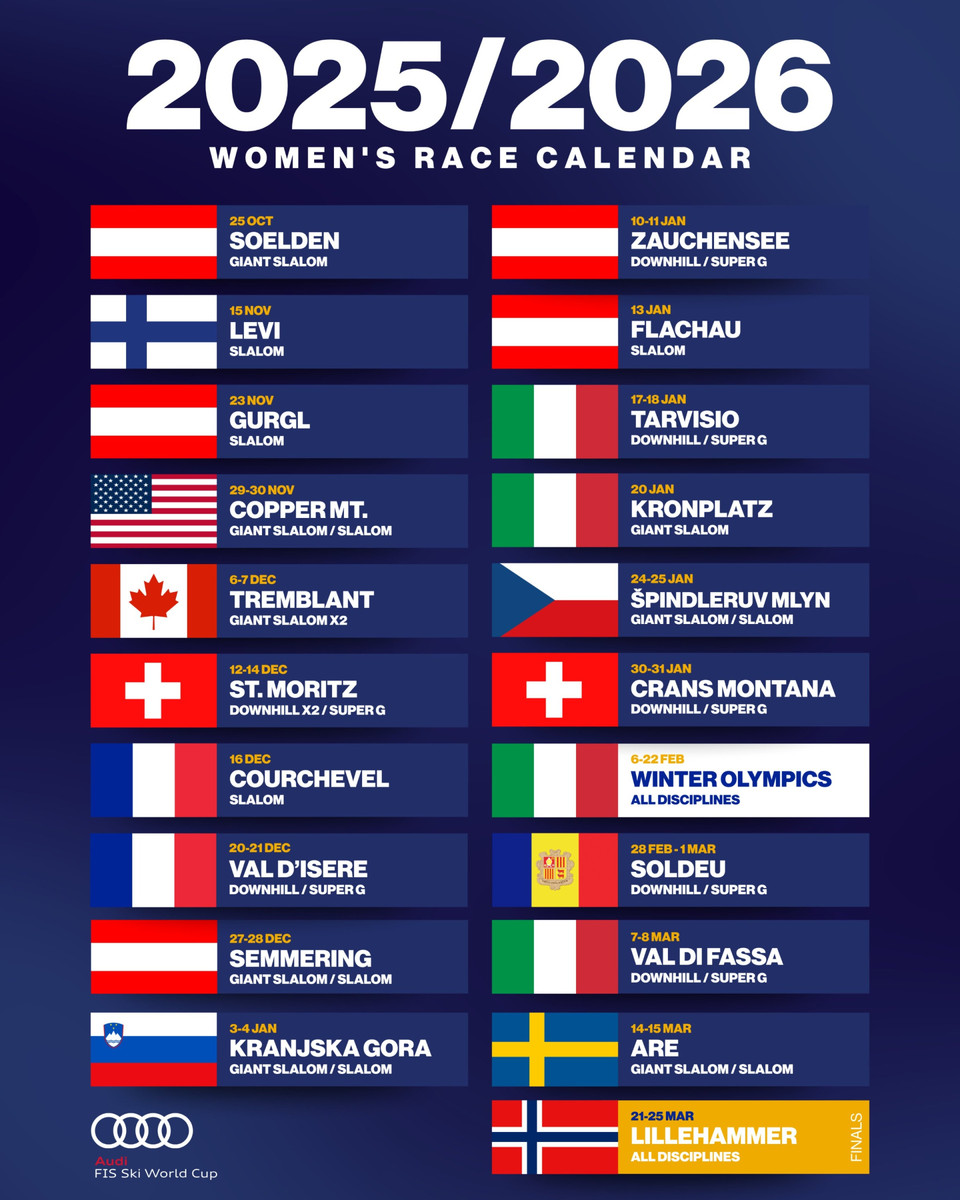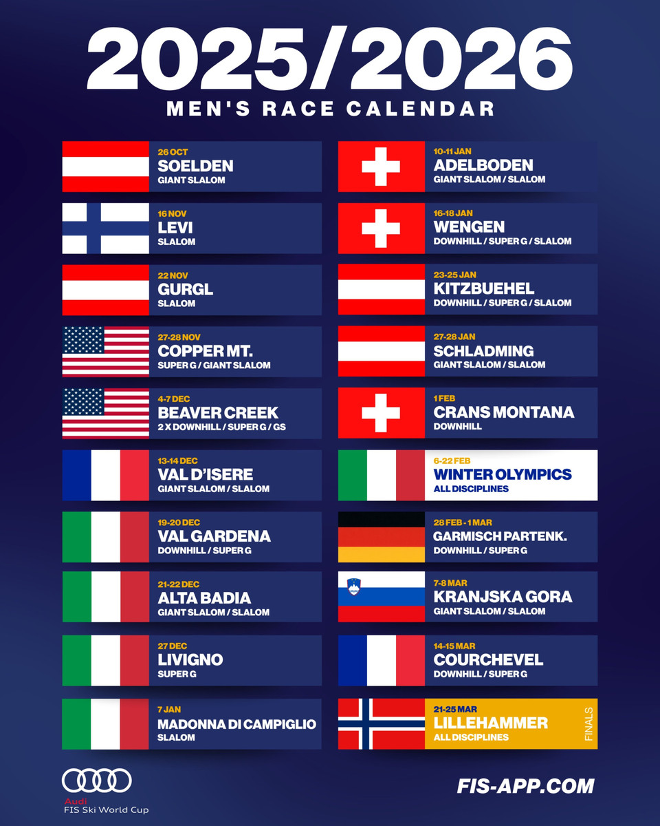 В останній вікенд жовтня на Реттенбахському льодовику в австрійському Зольдені за традицією стартує новий сезон Кубку світу з гірських лиж. Цей сезон буде особливим: по-перше, він буде ювілейним, 60-м у історії Кубку світу, по-друге – це сезон олімпійський. Гірськолижні змагання Олімпіади-2026 відбудуться на класичних трасах Кубку світу: чоловіки змагатимуться на легендарній "Стельвіо" в Борміо, жінки – на "Олімпія делле Тофане" в Кортіна д’Ампеццо.