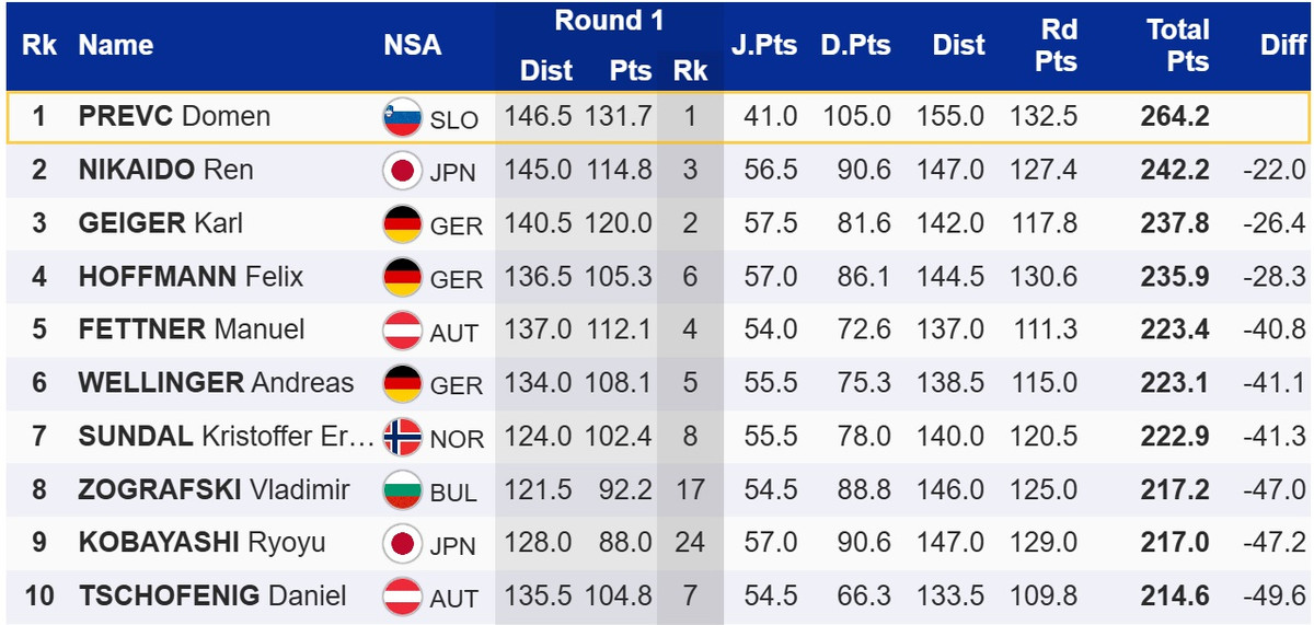 Словенський стрибун на лижах з трампліну Домен Превц виграв перший особистий старт на етапі Кубку світу в німецькому Віллінгені. В другому раунді він стрибнув на 155 метрів, зупинившись в 0,5 метра від повторення рекорду трампліну.