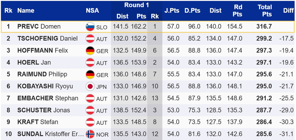 Він на 17,5 бала випередив свого партнера по команді Тімі Зайца та чинного переможця Турне, австрійця Даніеля Чофеніга, які розділили друге місце.