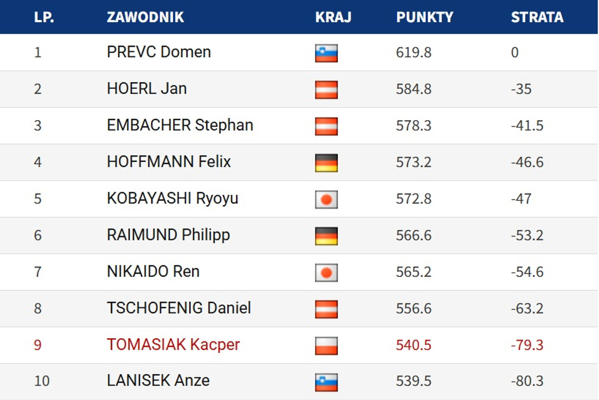 Топ-3 замкнув ще один представник Австрії, Штефан Ембахер, який напередодні у кваліфікації встановив новий рекорд трампліна. Превцу ця перемога дозволила закріпити лідерство у загальному заліку Турне.