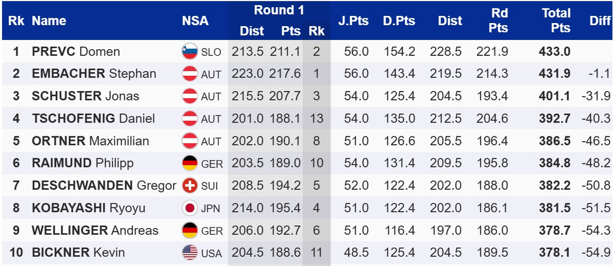 У Бад Міттерндорфі Превц випередив двох господарів змагань – Штефана Ембахера та Йонаса Шустера. Для останнього це перший у кар'єрі подіум на Кубку світу. Ембахер не зумів втримати лідерство після першої спроби.