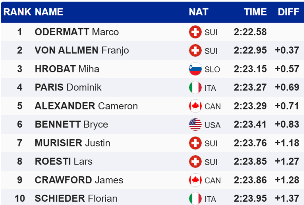 лідер загального заліку, Марко Одерматт, другим став Франьо Фон Алльмен, який