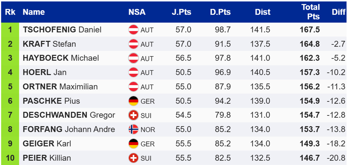У першій спробі основного турніру українець стрибатиме проти чинного чемпіона світу на великому трампліні, словенця Тімі Зайца. Нагадаємо, на Турне використовується нокаут-система, при якій у другу спробу потрапляють 25 переможців своїх пар та 5 лакі-лузерів – спортсменів, які показали найкращі результати серед тих, хто свою пару програв.