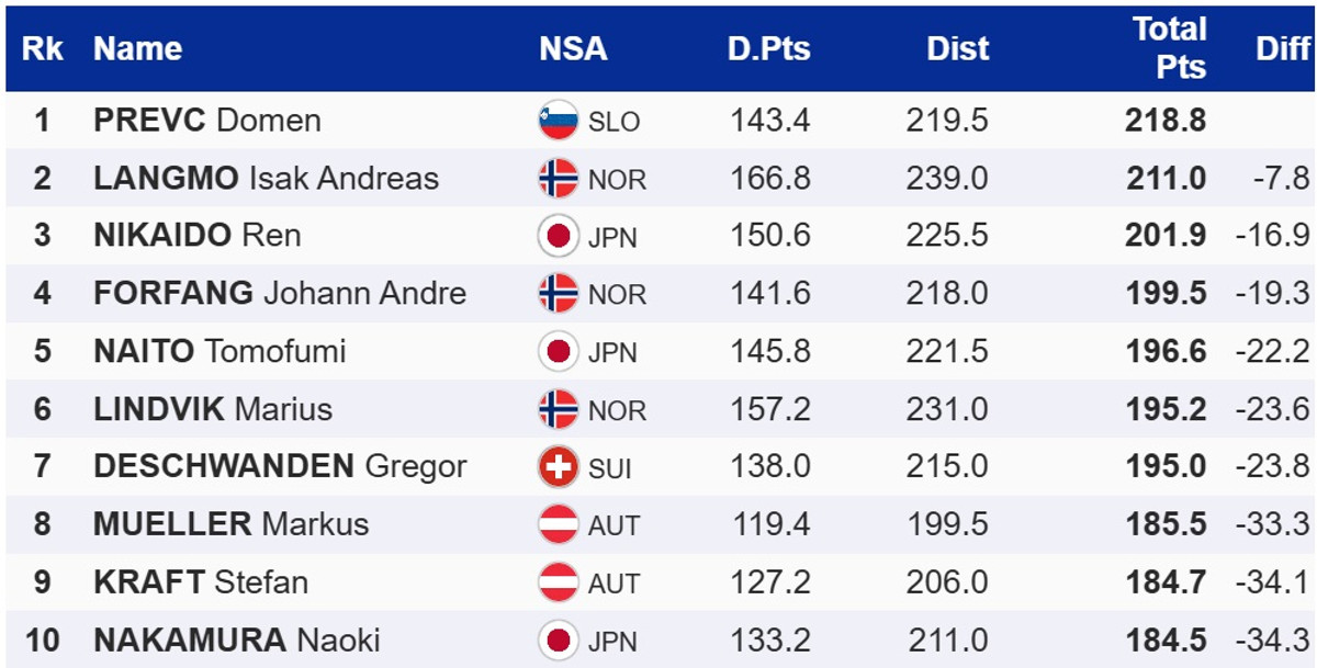 Перемогу в кваліфікації здобув лідера загального заліку Кубку світу, словенець Домен Превц. Він випередив господаря змагань, норвежця Ісака Андреаса Лангмо, та японця Рена Нікайдо.