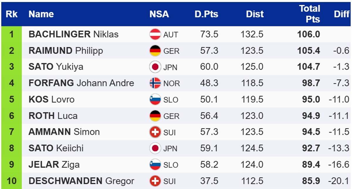 Перемогу в кваліфікації здобув австрієць Ніклас Бахлінгер, який випередив німця Філіппа Раймунда та японця Юкія Сато.