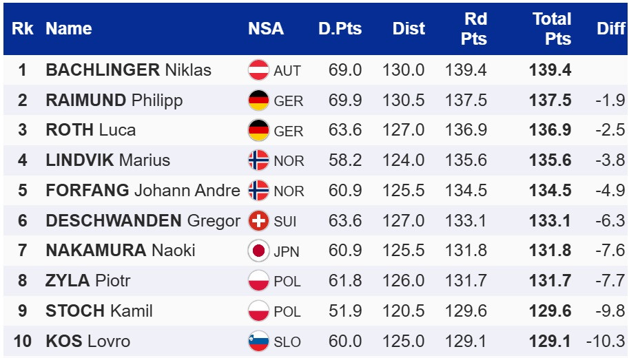 Перемогу в такому експериментальному форматі здобув австрієць Ніклас Бахлінгер. Він випередив двох представників Німеччини – Філіппа Раймунда та Луку Рота.