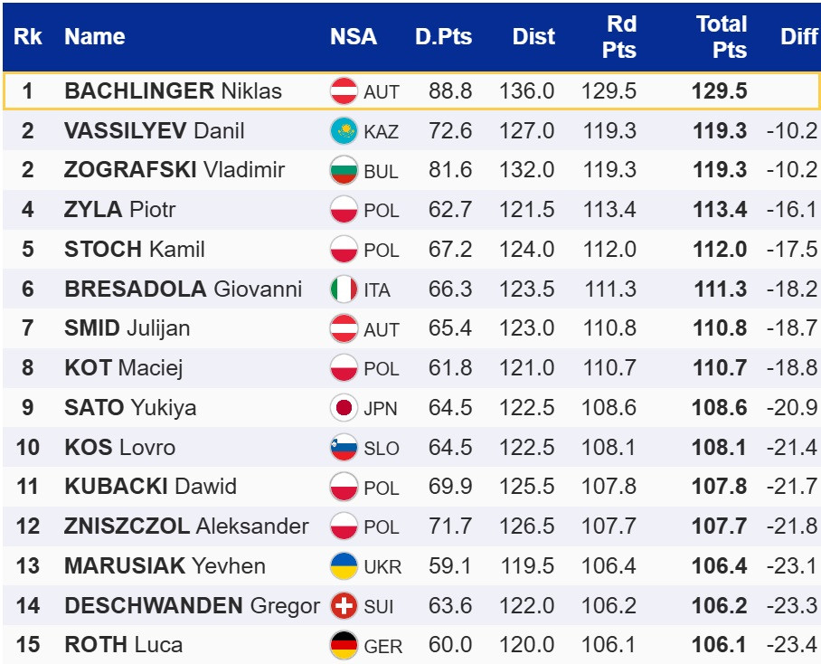 Нагадаємо, у суботньому старті в Віслі Калініченко та Марусяк очок не набирали, Віталій вдруге у сезоні отримав дискваліфікацію в другій спробі.
