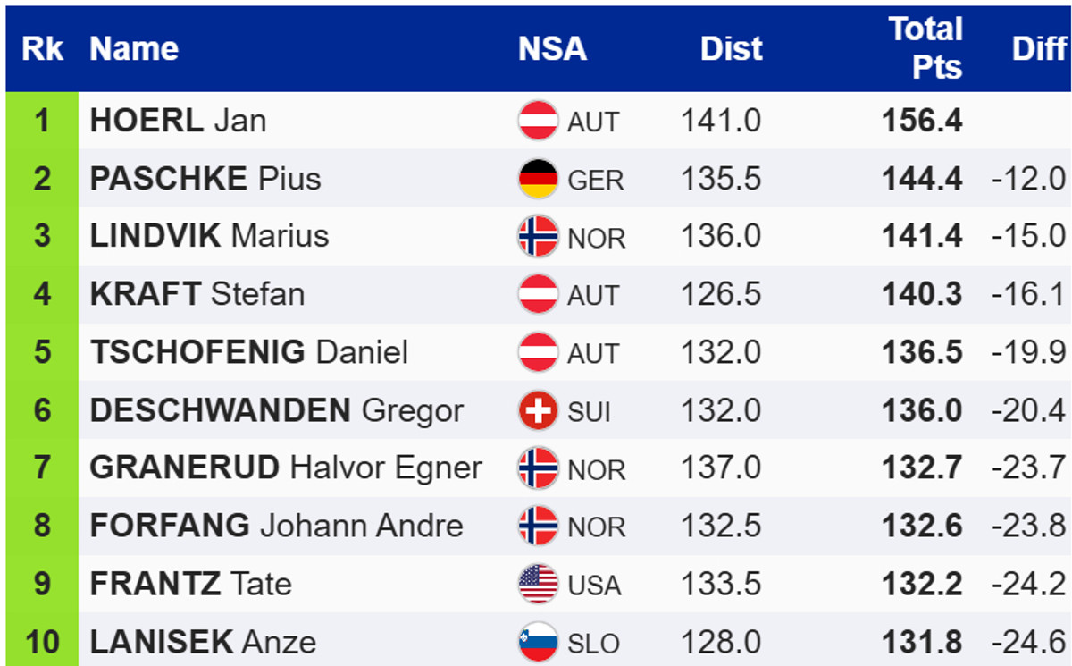 Перемогу в кваліфікації здобув австрієць Ян Хьорль, який випередив німця П’юса Пашке та господаря змагань, норвежця Маріуса Ліндвіка.