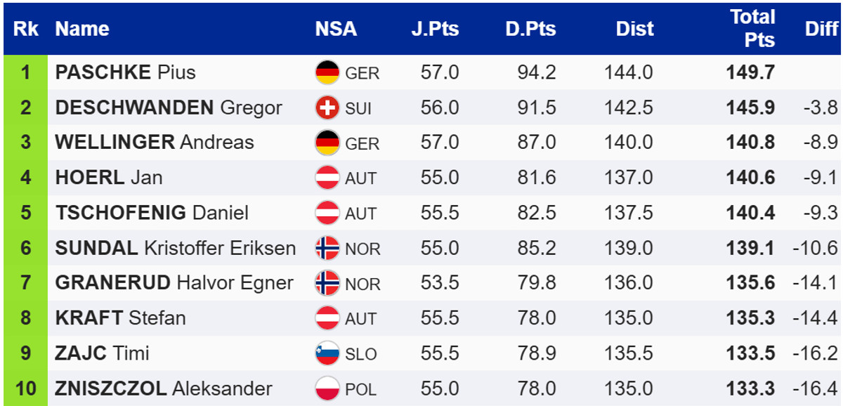 Виграв першу спробу лідер загальному заліку Кубку світу та господар змагань, німець П’юс Пашке. Він випередив швейцарця Грегора Дешвандена та свого партнера по команді, Андреаса Веллінгера.