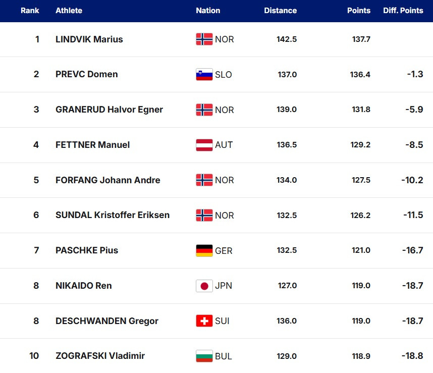 Інший представник України, Євген Марусяк, подолати кваліфікацію не зумів. Він стрибнув на 117,5 метра та показав 55-й результат із 64 учасників. Перемогу в кваліфікації здобув норвежець Маріус Ліндвік, який випередив лідера загального заліку Кубку світу Домена Превца та партнера по команді Халвора Егнера Гранеруда.