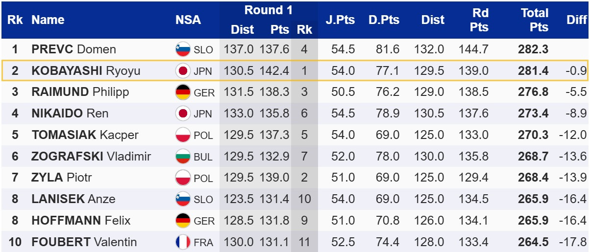Переможний дубль у Віслі оформив Домен Превц, який на 0,9 бала випередив японця Рьою Кобаясі. Топ-3 замкнув німець Філіпп Раймунд. Ця перемога дозволила Превцу перехопити лідерство у загальному заліку Кубку світу в свого партнера по команді Анже Ланішека, який сьогодні посів 9 місце.
