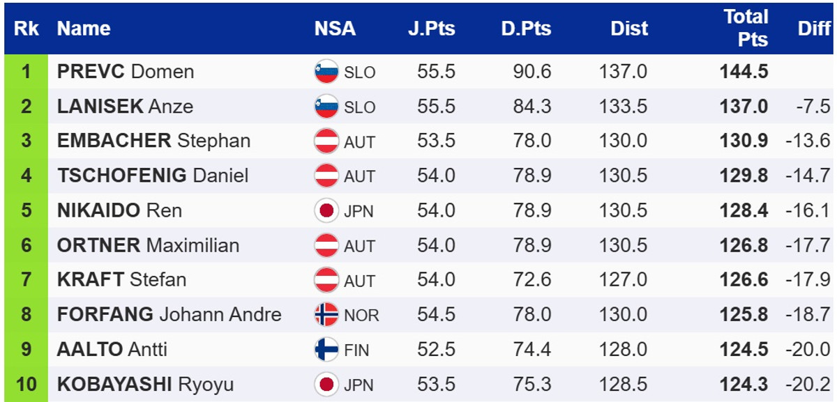Перемогу в кваліфікації здобув лідер Кубку світу, словенець Домен Превц. Він випередив партнера по команді Анже Ланішека і австрійця Штефана Ембахера.