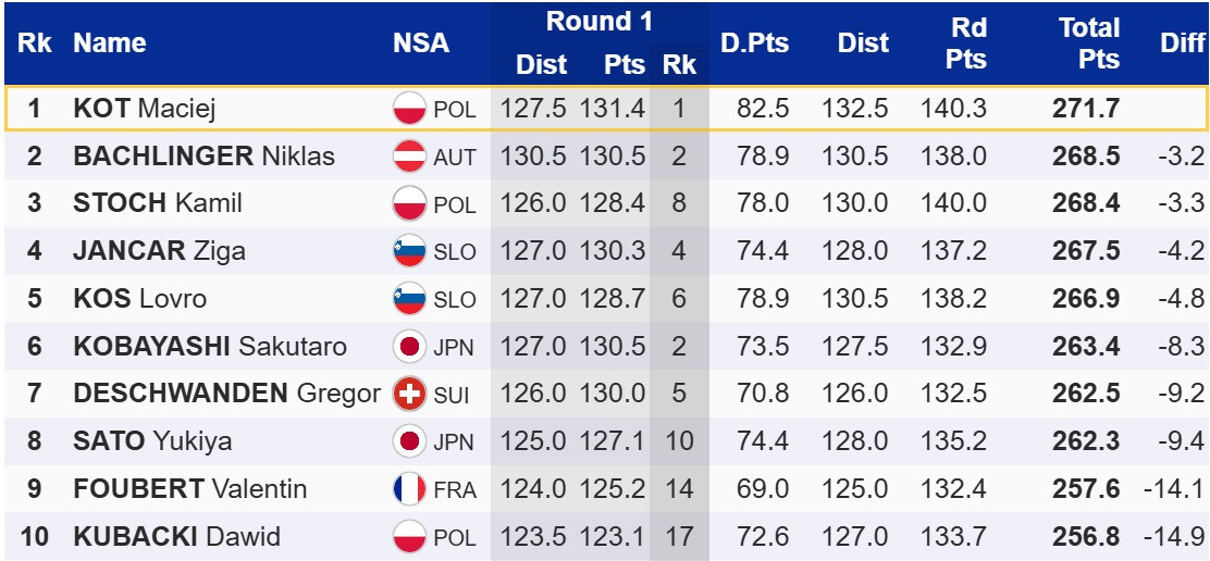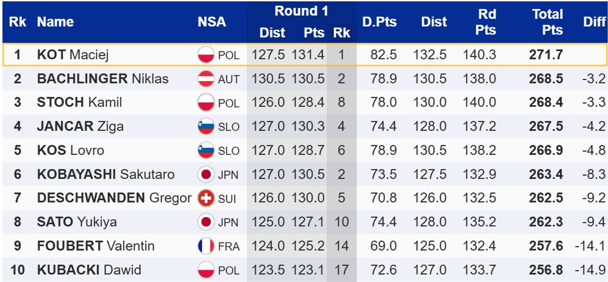 Перемогу в Віслі здобу господар змагань, Мацей Кот. Він випередив австрійця Нікласа Бахлінгера та свого партнера по команді Каміля Стоха.