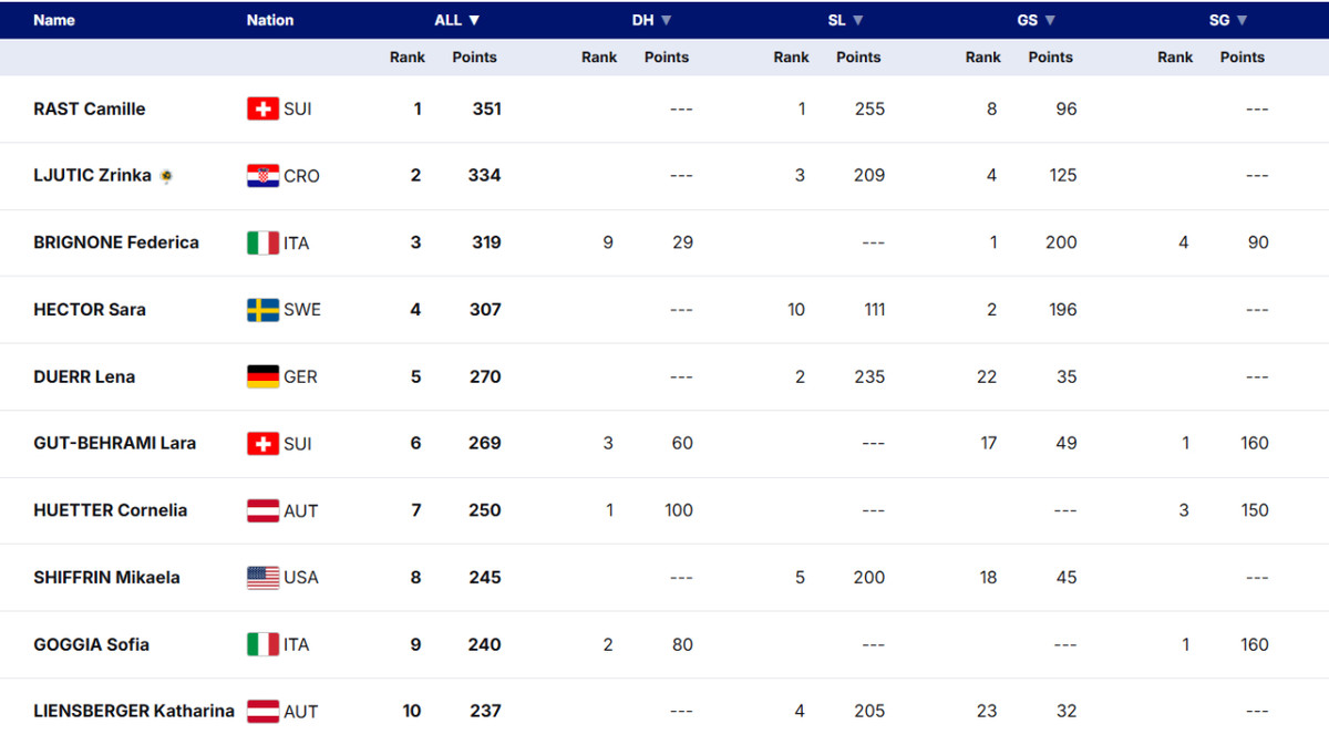 Загальний залік Кубку світу (жінки):