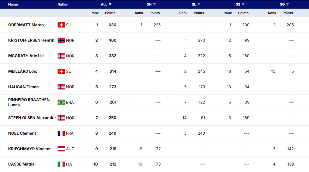А ось Марко Одерматт занести собі в актив етап у Борміо не може: два п’ятих місця. У супергіганті він міг поборотися щонайменше за подіум, проте допустився доволі грубої помилки у Карчентіні. В цілому, певні підсумки щодо стартової частини сезону у виконанні зіркового швейцарця можна робити. Поки що він виглядає далеко не бездоганно та точно слабкіше, ніж у минулому сезоні. Проте навіть у такого Одерматта поки що не виникає проблем у загальному заліку: Марко щастить, що зараз у нього немає такого сильного суперника, яким міг би бути, наприклад, здоровий і оптимально готовий Александер Омодт Кілде.