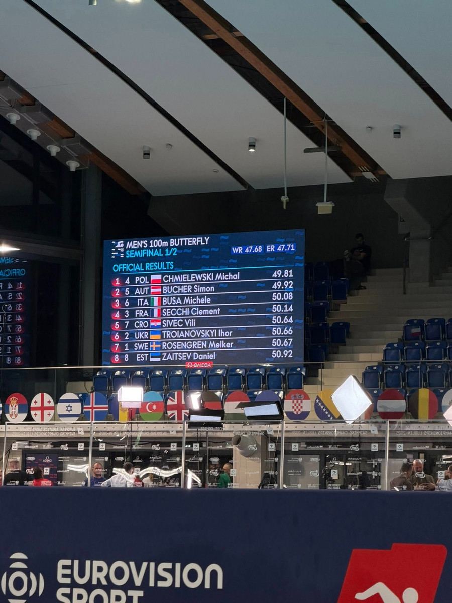 Українець Ігор Трояновський виступив на дистанції 100 м батерфляєм на чемпіонаті Європи з плавання на короткій воді.