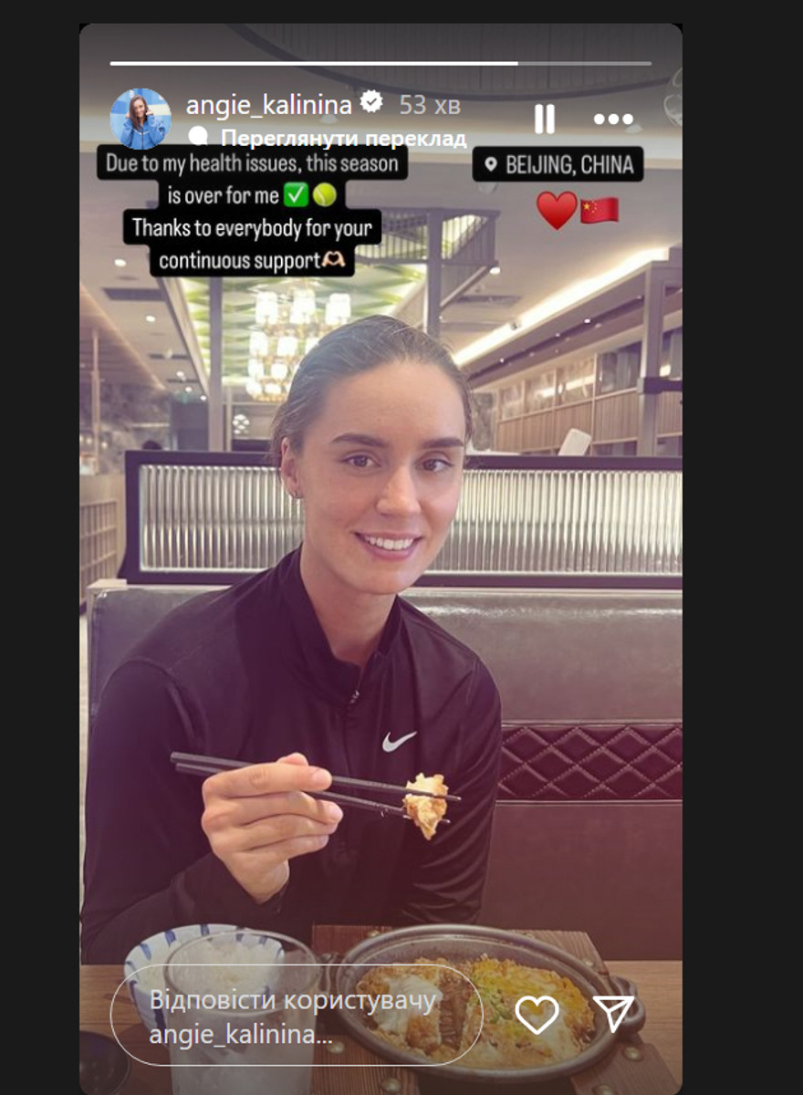 Українська тенісистка Ангеліна Калініна (48) прийняла рішення достроково завершити сезон через проблеми зі здоров'ям.