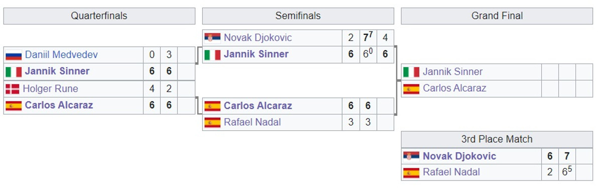 У фіналі замагатимуться лідери світового рейтингу Яннік Сіннер і Карлос Алькарас. Переможець забере 6 мільйонів доларів призових.