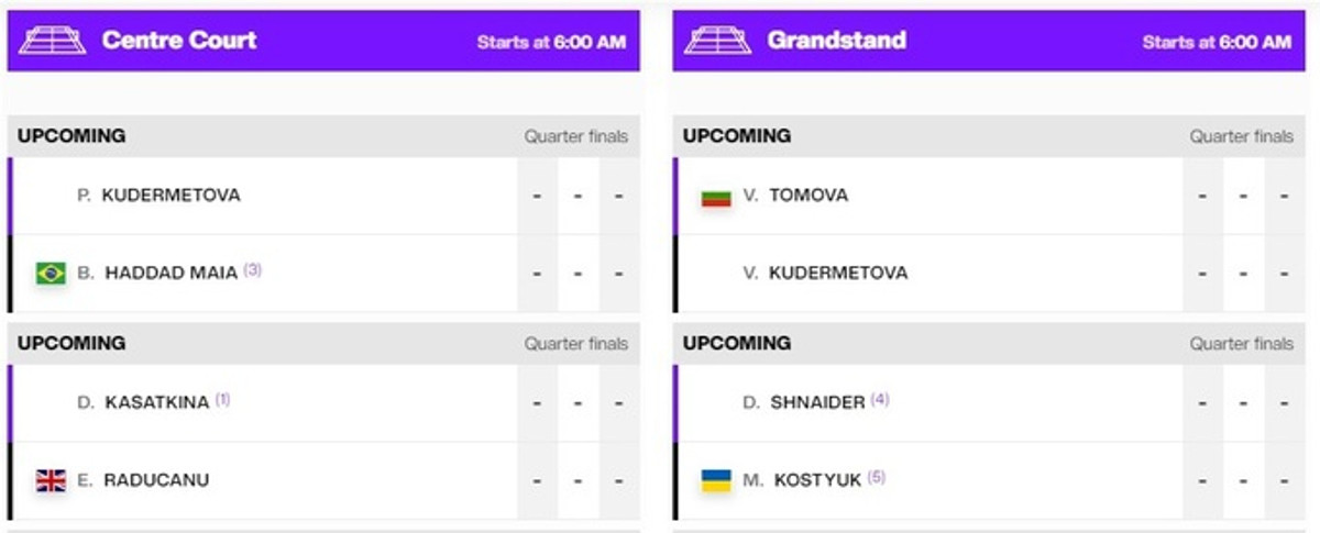 Сьогодні, 20 вересня, перша ракетка України Марта Костюк (18) мала зіграти матч 1/4 фіналу на хардовому турнірі WTA 500 у Сеулі (Південна Корея) проти Діани Шнайдер (20). Гру довелося перенести через сильну зливу.