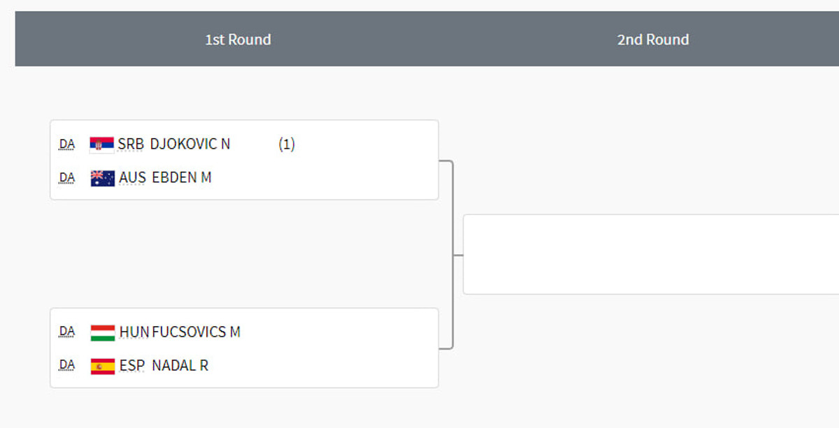 "Король грунту" у першому колі зіграє проти угорця Мартона Фучовича, а 24-разовий переможець турнірів Grand Slam проведе матч проти австралійця Метью Ебдена. Переможці цих пар зійдуться у другому колі.