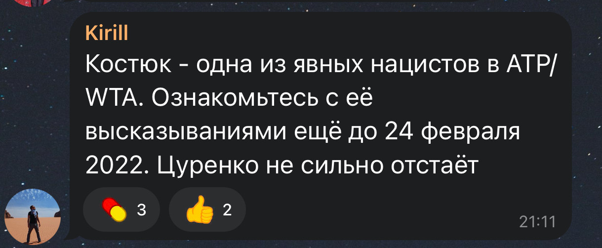 Нагадаємо, напередодні українська федерація тенісу оперативно відреагувала на матч Костюк і Касаткіної, висловивши підтримку ексросіянці, зазначивши її чітку антивоєнну позицію.