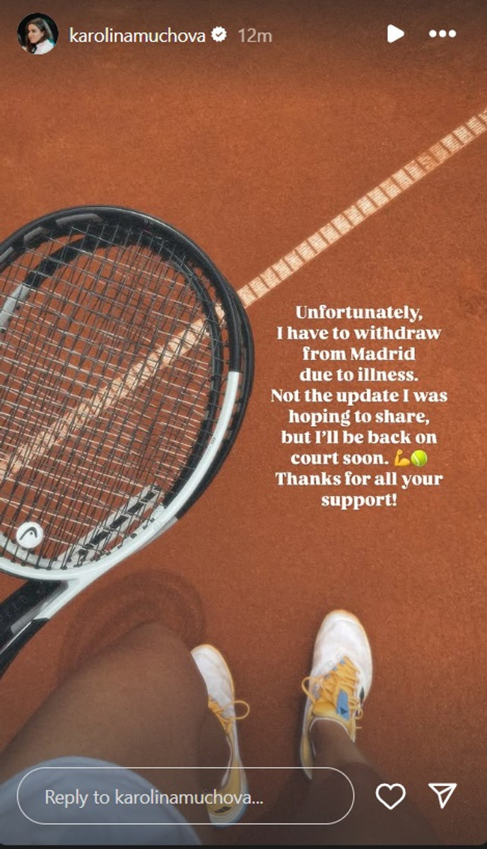 "На жаль, я змушена знятися з турніру в Мадриді через хворобу. Це не та новина, якою я сподівалася поділитися, але я повернуся на корт незабаром. Дякую за вашу підтримку!", – написала спортсменка.