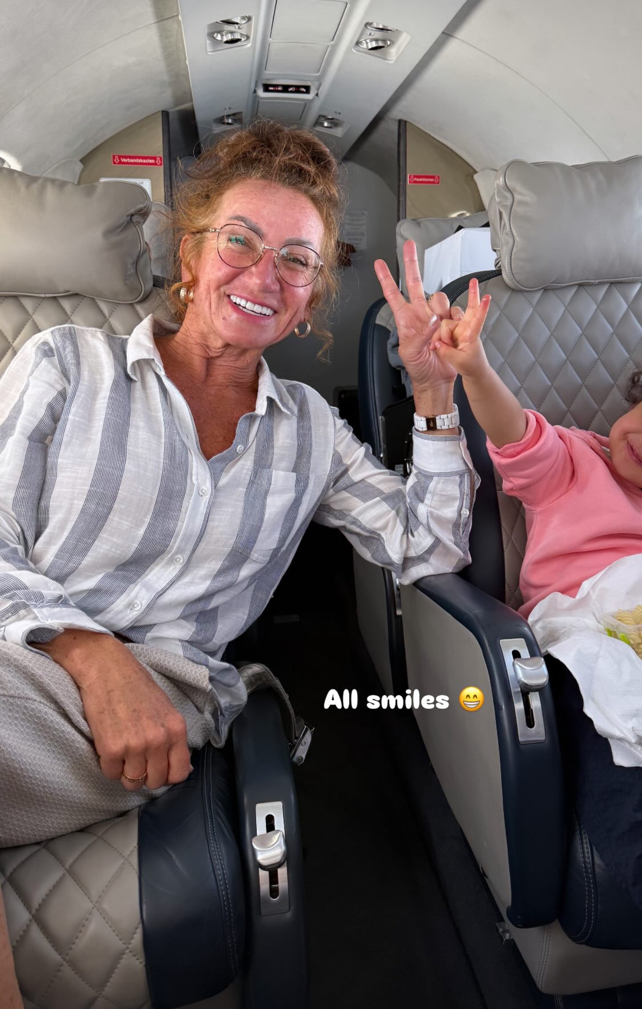 У соцмережах спортсменка поділилася зворушливим фото з літака, на якому її донька Скай проводить час із бабусею.
