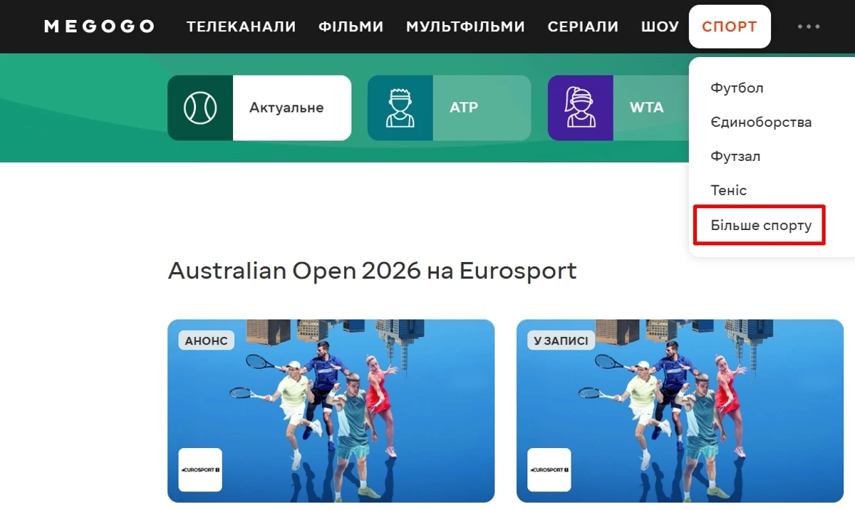 Також на MEGOGO доступні додаткові канали Євроспорт, які працюють під час великих турнірів.