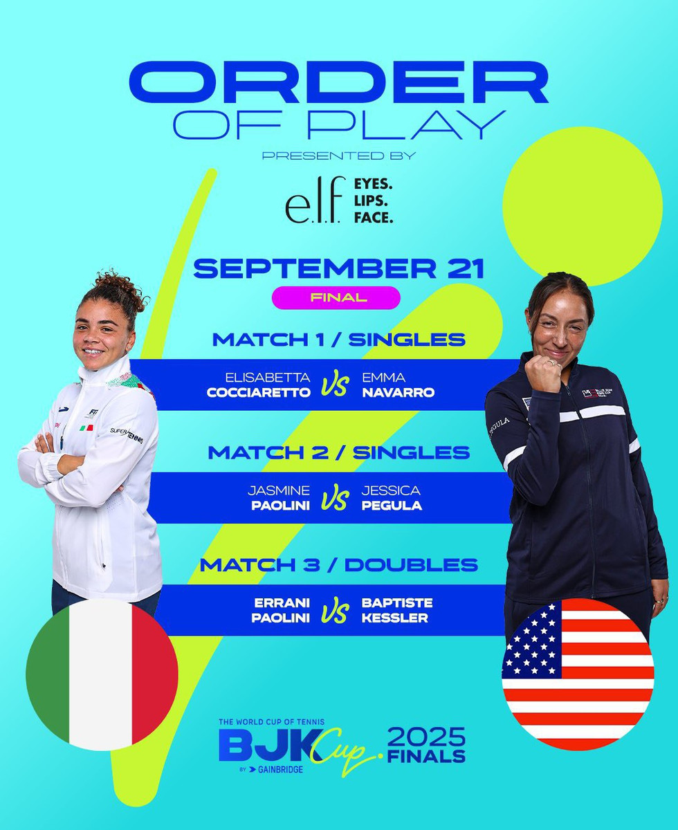 Жіночі збірні США та Італії з тенісу оголосили склади на фінальну матчеву зустріч Кубку Біллі Джин Кінг.