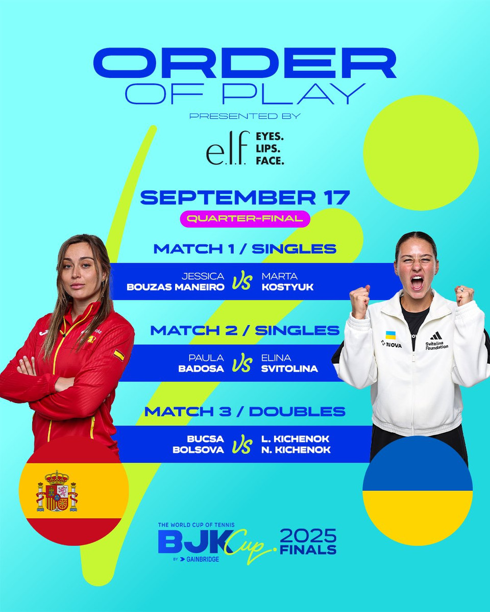17 вересня о 12:00 на корт вийдуть другі номери команд, Марта Костюк (26) та Джессіка Бузас Манейро (51).