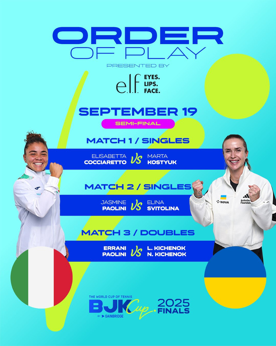 19 вересня о 12:00 на корт вийдуть другі номери команд, Марта Костюк (26) та Елізабетта Коччаретто (91).
